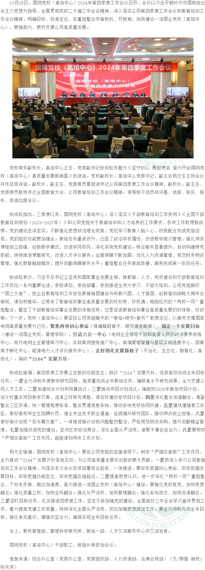 國(guó)網(wǎng)黨校(高培中心)召開(kāi)2024年第四季度工作會(huì)議